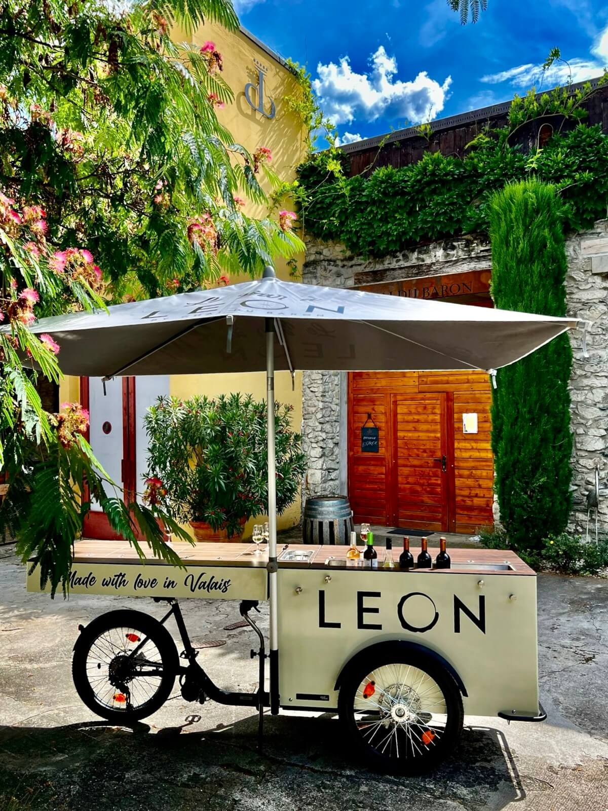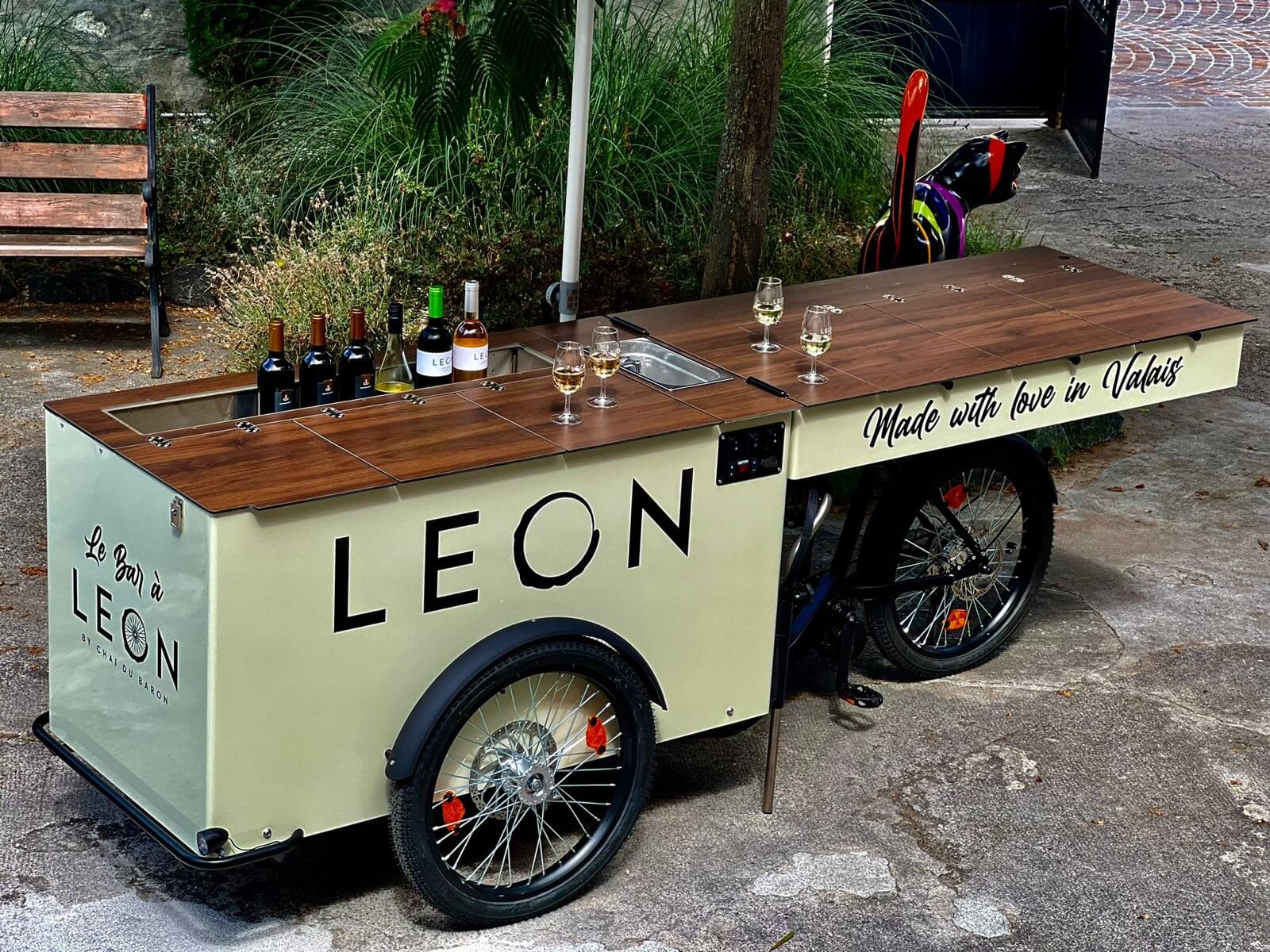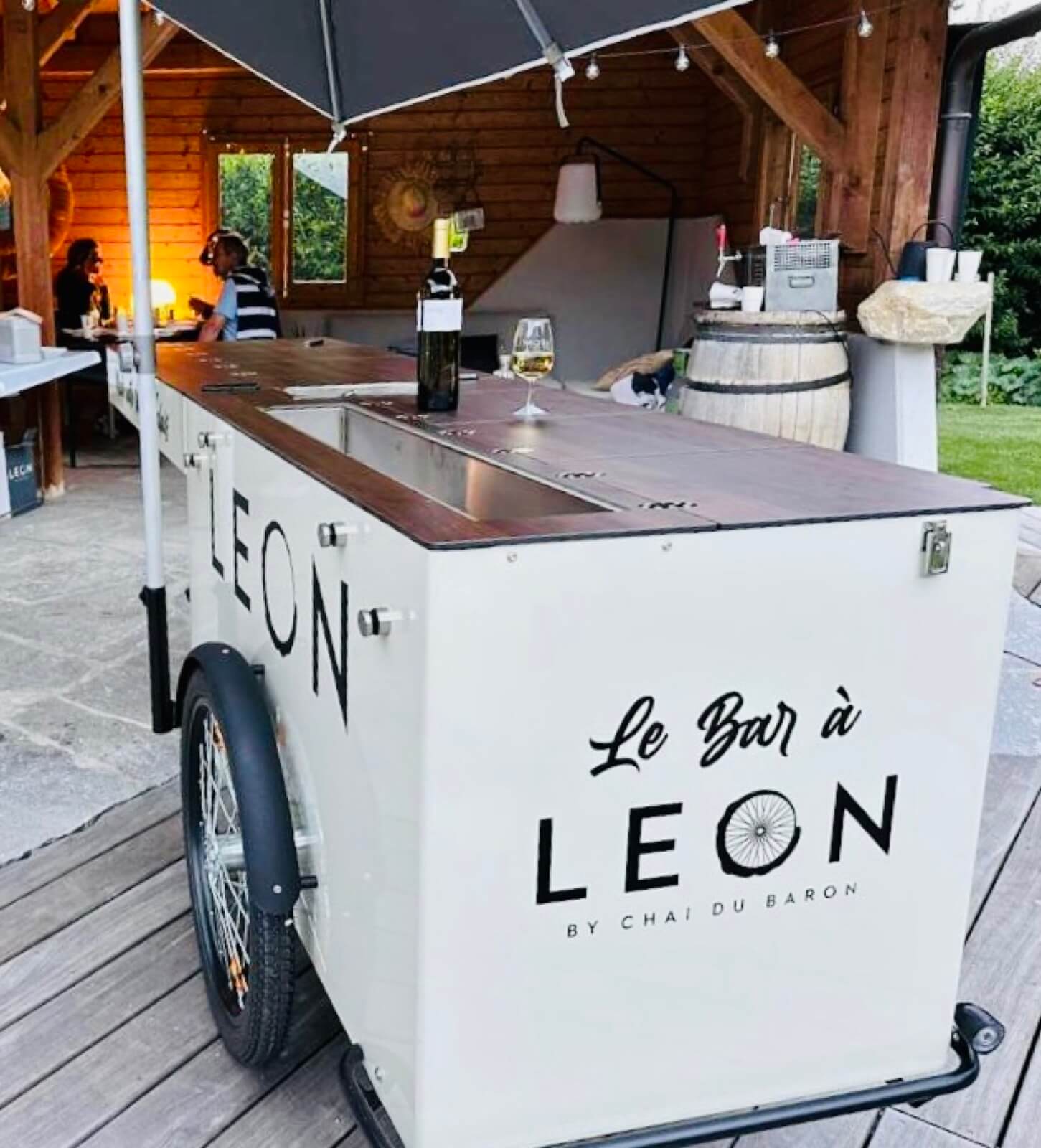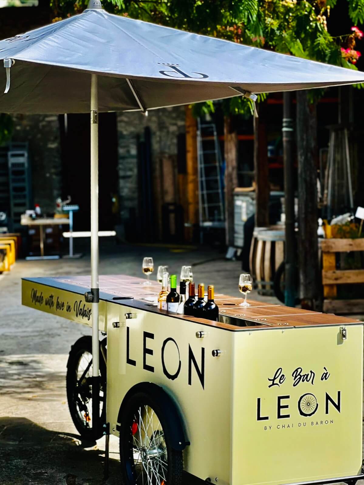 Notre Wine Bike «Le Bar à LEON» est un vélo électrique transformé en bar nomade réfrigéré au look vintage !